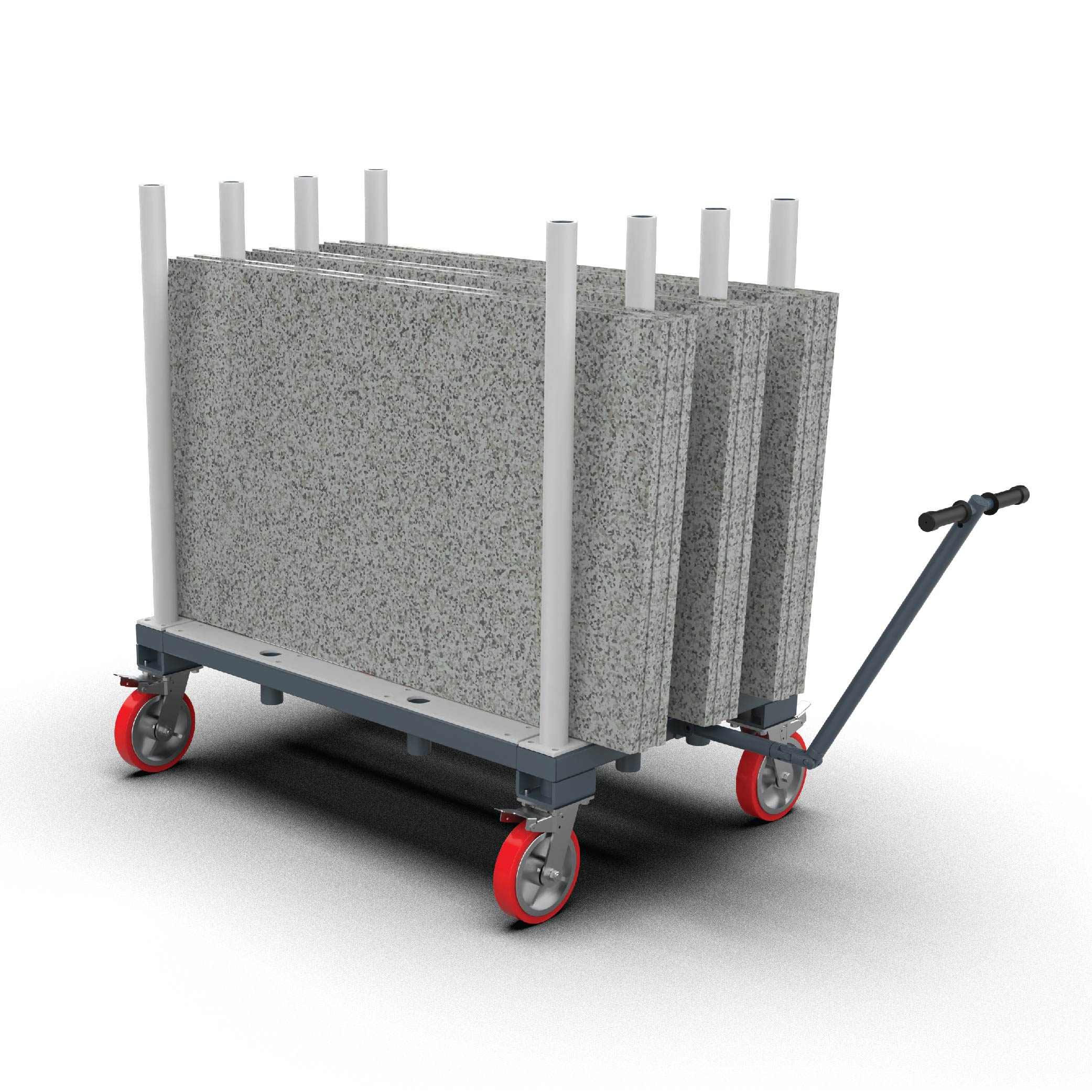 - Non-slip rubber surface protects slabs and keeps them stable during transport.