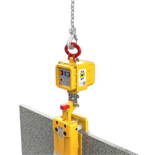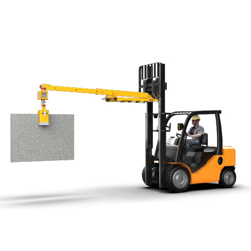 • Users can remotely operate the device via a wireless controller, allowing safe lifting, rotating, and moving of stone slabs directly from a forklift, which minimizes risks and avoids exposure to hazardous areas.