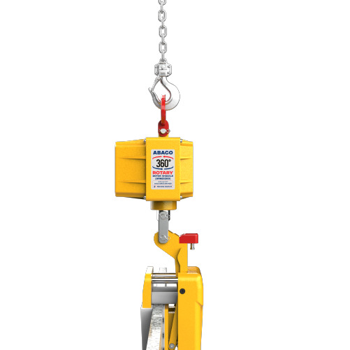 Abaco Rotary Motor Shackle ARMS1200 is a device that facilitates the easy lifting and transportation of stone slabs. It is compatible with stone clamps, glass clamps, forklifts and hoists. Notably, the device allows for the rotation and movement of materials in both directions, providing flexible and highly efficient operation.